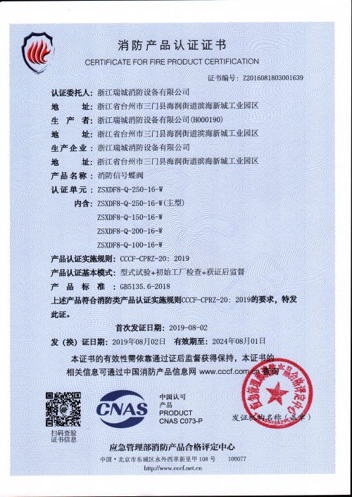 ZSXF信号蝶阀是自动喷水灭火系统中的配套附件之一,作为自动喷水灭火系统的水源搬运控制阀门,具有阀位显示信号,该信号可接至控制中心实时监控,以免造成误关,提高系统的可靠性。是消防给排水管路的控制阀门。